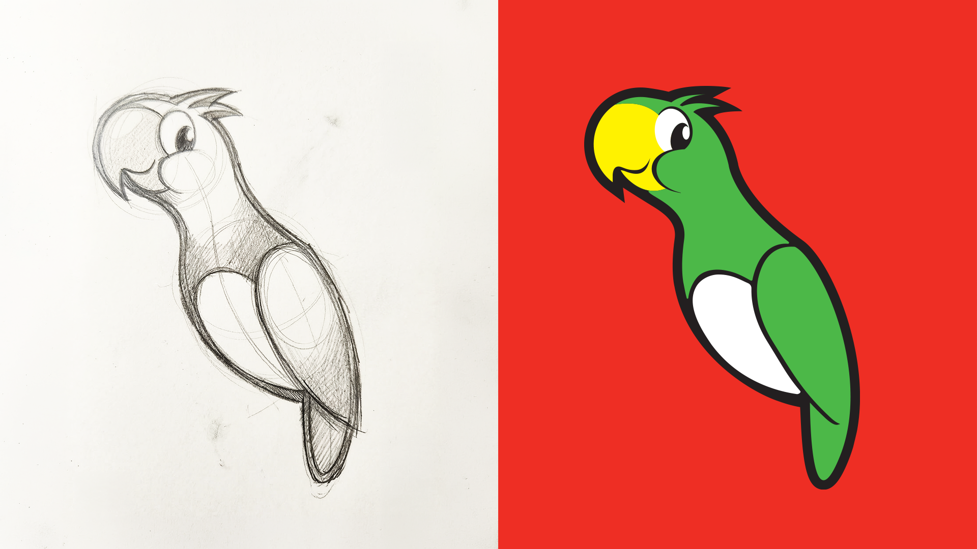 We started by refining the brand’s most recognisable assets. The parrot, a long-time mascot, was given a cleaner, more dynamic illustration style and a friendlier personality. Its form was simplified and made more active to connect better with children. One key element of the redesign was improving the parrot’s “eye contact” with the consumer, so its gaze now feels more direct and engaging.