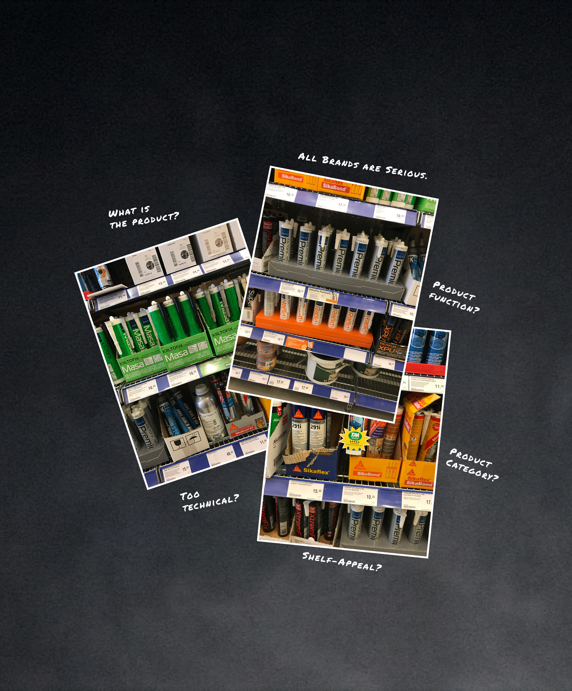 We began by analysing the adhesive market, where predictable design systems, dense technical language, and restrained colour palettes dominate. Most brands look and sound the same: serious, conservative, and overengineered. This uniformity revealed a clear opportunity to do something different.